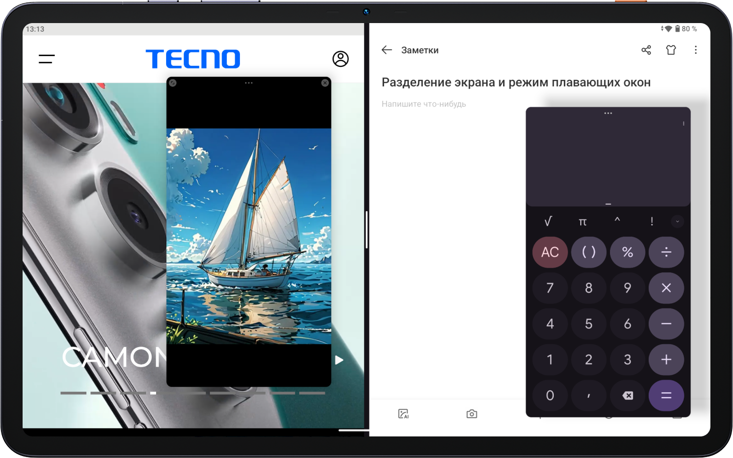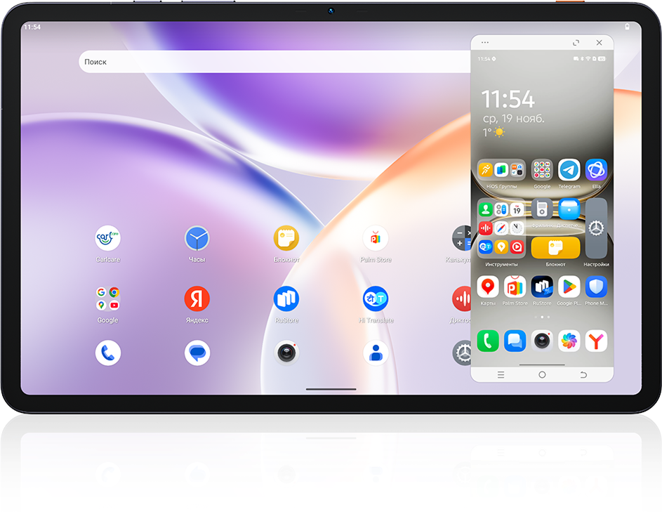 На большом дисплее 12" можно открыть сразу два приложения в режиме разделения экрана, и ещё два – в